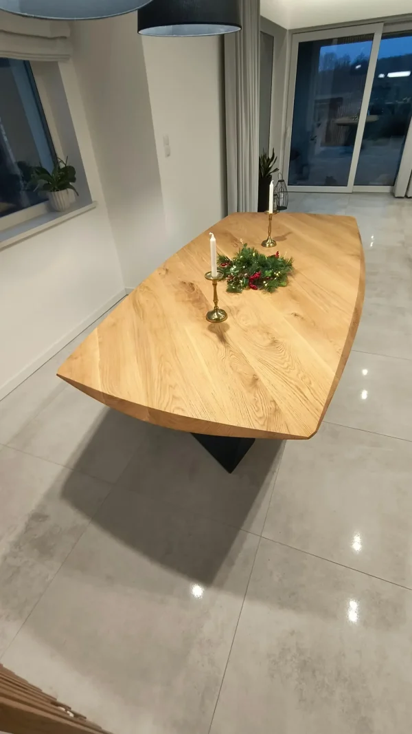 Każdy egzemplarz jest wykonywany na zamówienie, dlatego usłojenie i odcień drewna mogą się nieznacznie różnić — sprawiając, że Twój stół będzie naprawdę niepowtarzalny.